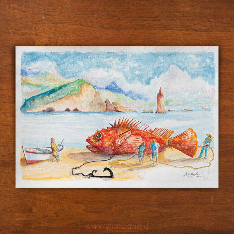 Disegno e acquerello del pittore isolano Silverio Mazzella